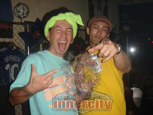日曜日はNATTY REGGAEというダンスに出演してきました。 呼んでくれた主催者のCRISSと彼の友達。 ありがとうございましたー! 場所はDREAMERというスポーツバー。 日曜日の夕方からだったので お客さんも小学生から高齢者まで様々。 終始和やかで良い雰囲気でした。 んで俺らは食事から戻るといきなりの出番要請。 マジか!?と食べ過ぎた腹を抱えてドタバタでプレイ開始へ。 でも佐世保という土地柄、歌詞でも攻めれるし 女の子達も良いノリでセグも偏る事なく色々とかけれたんで 無難に落ちるとこもなく気づいたら二時間頂いてました。 んで福岡のオープンサウンドさんと交代。 色んな人がいて色んな人に会ったけど 佐世保でストリートとダンスを繋いでるこの方達に会うと スゲー安心します↓ KANEGONさん ADDICT MIKIちゃん いつもお世話なっております。 んで 最後はAFOというジャンベチームの演奏が始まり 会場の熱は最高潮へ。 良いライブでした! ステージ後ろの大画面に映ってた燃え盛る炎と ジャンベの音が良い感じに混ざってたんで 写真撮ろうとシャッターを切った途端... なぜかブッシュせがれのドアップwwwww .おおおい!雰囲気ぶち壊しやないかい..苦笑 この後,テロップの予告通り 北朝鮮の子供達の器械体操へ。 全く演奏と違う画面なのに 器械体操のシンクロ率高くて吹いたw てか、スゴイ良い環境だな佐世保。 楽しかったです。 12月はSHUT OUTに呼ばれてるんで 色々と仕込んでいこうかな笑